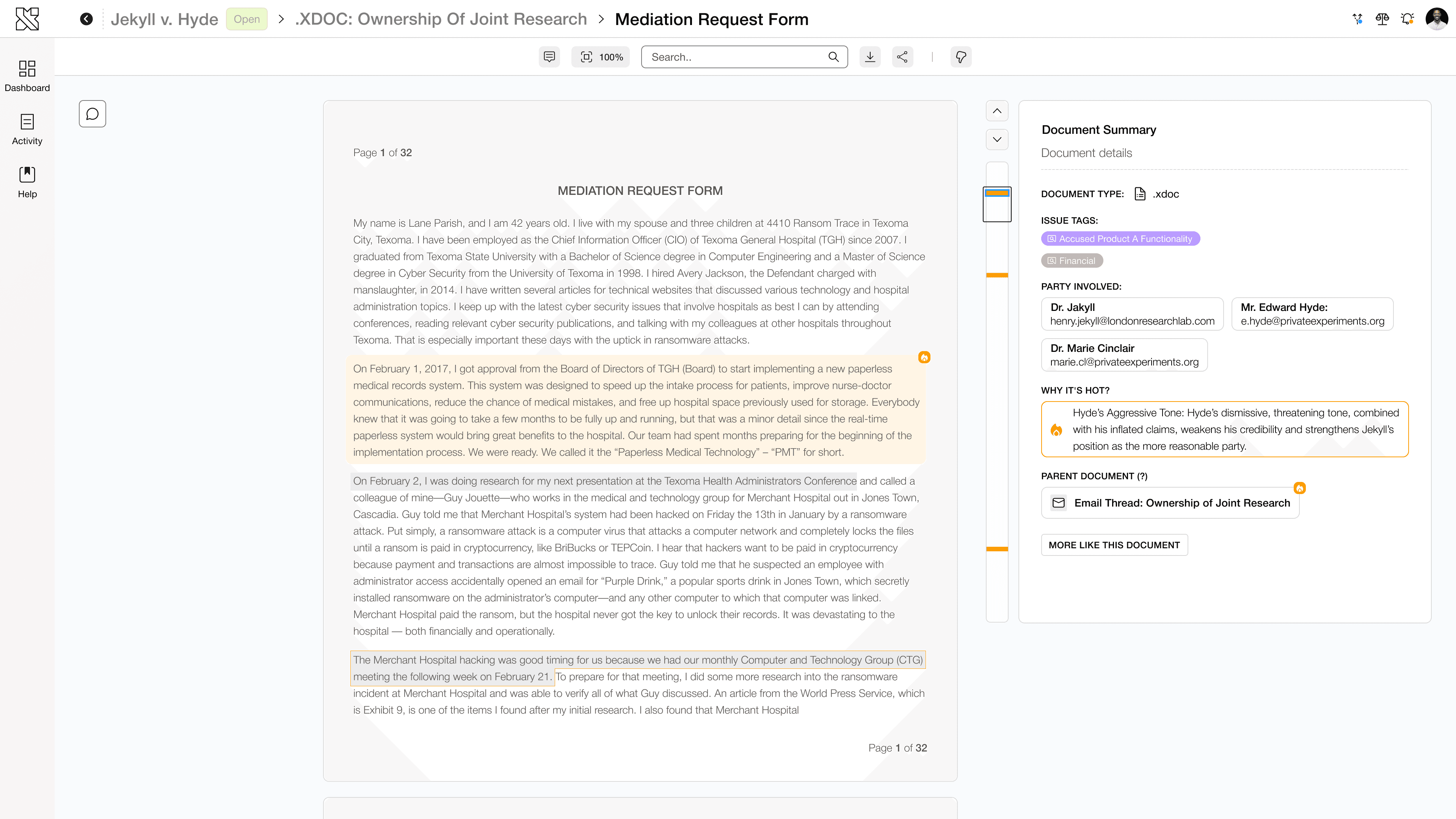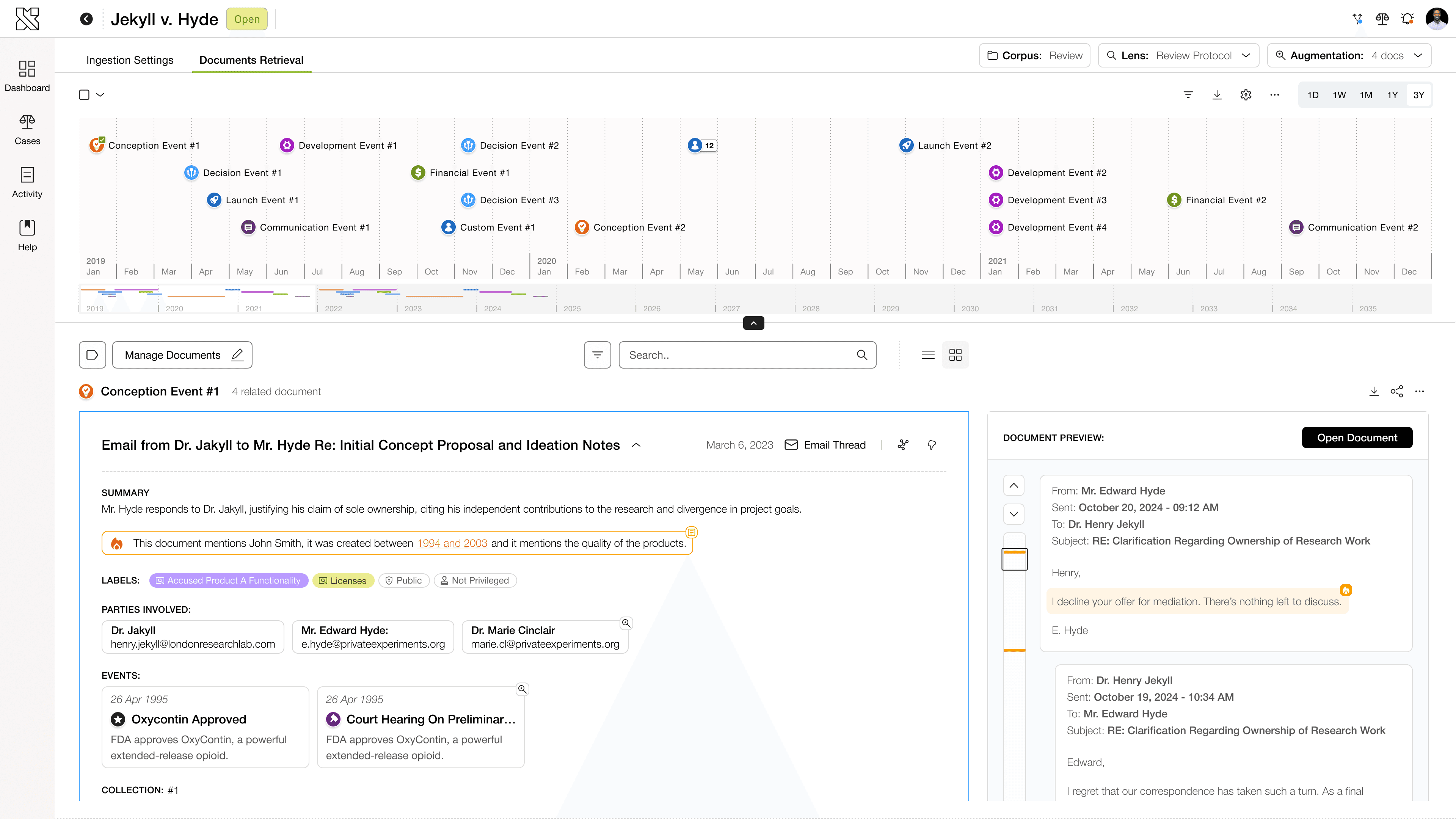 Design a tool that streamline litigation workflows by automating document retrieval, creating timelines, and enabling natural language queries, allowing litigators to focus on strategy and decision-making.
